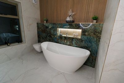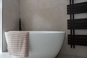 This En-Suite was designed to give off a calming yet fun space to soak away the stress of the day